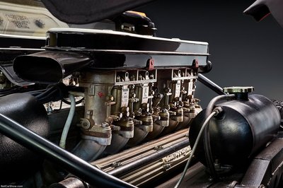 Látványos a keresztben égnek meredező Weber karburátorsor a Miura V12-ese felett