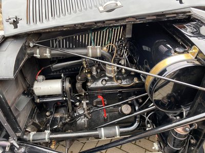 Motor a tűzfalnál, előtte a váltó, a hűtő alatt a difi Az Adler Trumpg Junior orrában