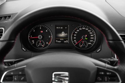 Teljesen VW a vezető környezete, csak a jelvény Seat - és tökéletesen újszerű a negyedik évét taposó autóban