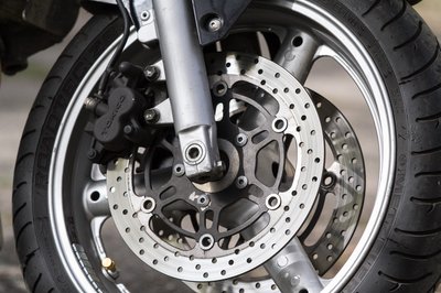 Hatvanezer kilométer után is jók még a gyári tárcsák. Ezek az úszó fékek nincsenek a helyzet magaslatán, viszont egy kezdő motoros pánikreakciójából sincs így automatikus pofáraesés
