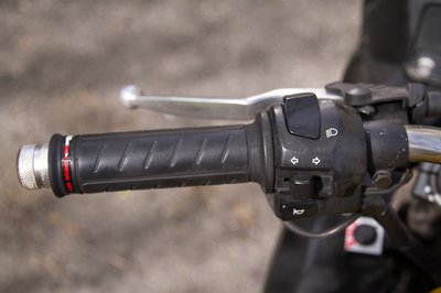 Átalakított kormány, az eredeti csutkák helyett a naked változat csőkormányát tették fel. Ehhez szükség volt még a pucér SV villahídjára és egy hosszabb fékcsőre - de érdemes ilyenkor egy hosszabb kuplungbovdent is beszerezni