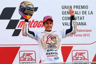 Bár a gyártói címet 2012-ben is hozták, egyéniben volt egy év kihagyás. 2013-ban aztán jött a húszéves Marc Márquez, és a Moto2 után a GP-t is megnyerte. Újoncként előtte 1978-ban Kenny Roberts tudott győzni, három különböző kategóriában pedig Márquez elő