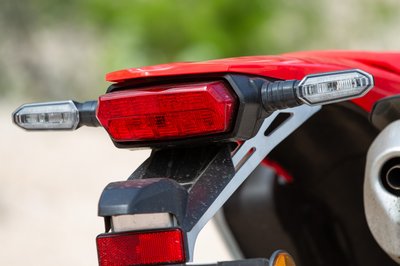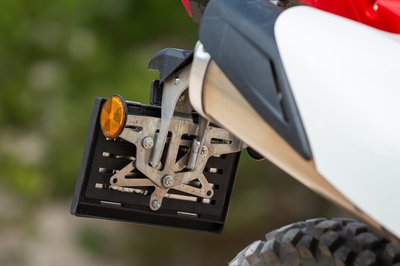 Szimpatikus, hogy ez nem csak látszatra terepes, a rendszámtábla-tartó konzol például masszív fém alkatrész, nem fogod elhagyni a plakettet egy rázósabb szakaszon