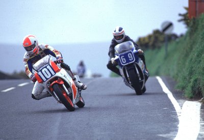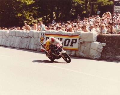 1984: Oxley a harmadik helyen az RG250-nel a Braddan Bridge-nél