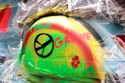 Van itt minden. béke-jel, kisvirágok, "béke" olaszul, meg sok-sok szín