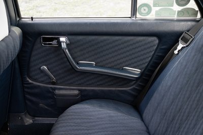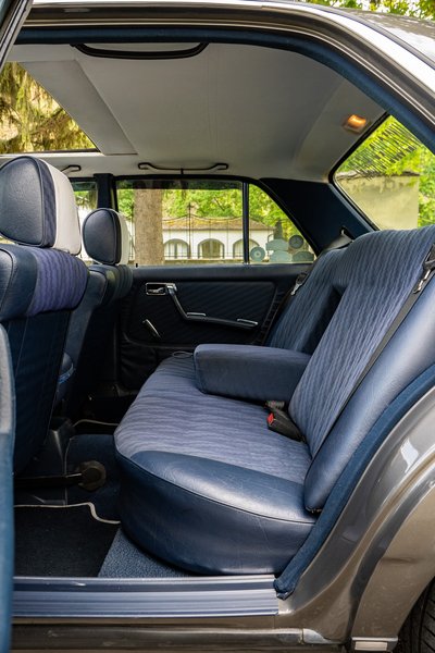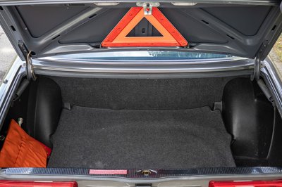 Szépen kárpitozott csomagtér, ha nem lenne ilyen magas a perem, könnyű lenne megpakolni. Az utód W124 már mélyre nyúló fedelet kapott