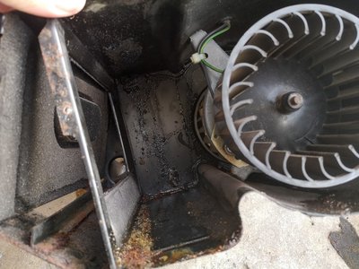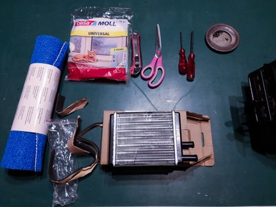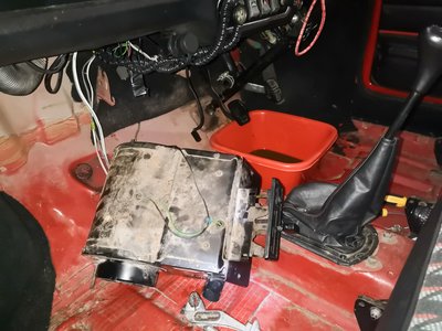 A szőnyeg könnyen kijött, kis lavór felfogta a fagyállót és már lent is a fűtésdoboz