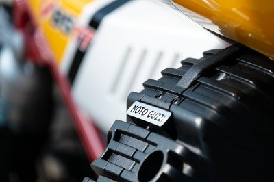 Guzzi-embléma a sas - a három alapító mind első világháborús pilóta volt, közülük egy lezuhant, mire létrehozták volna a céget. Neki ez a mementó