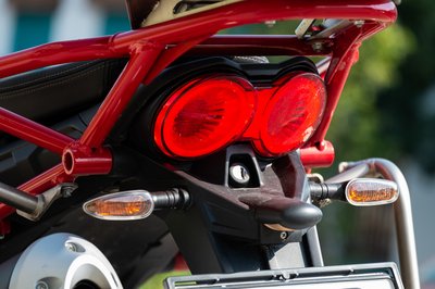 A hátsó lámpa is két karika (és ledes), itt a kulcslyuk, hogy le lehessen venni az ülést is