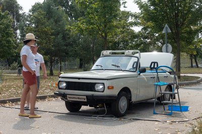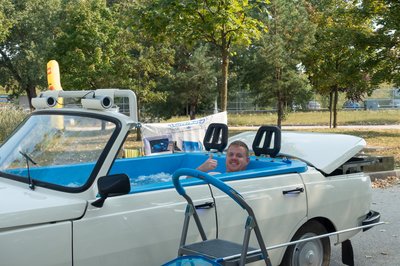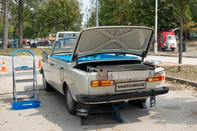 Waterbourg: a medencévé alakított Wartbourg, ami ugyan önerőből nem mozgásképes, de a kormánymű és a futómű megmaradt, hogy könnyű legyen felhúzni a trélerre.
