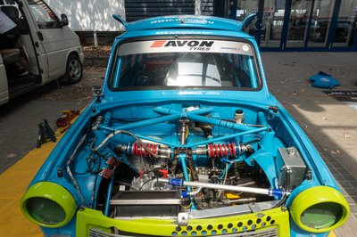 Ilyen nyomórudas felfüggesztés van a Forma1-es autók alatt, egészen hihetetlen látvány egy Trabantban.