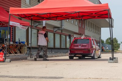 A háttérben egy nagyon komolyan felszerszámozott busszal készült a versenycsapat.
