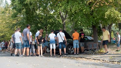 Nagy volt az érdeklődés, amikor a tulaj ráindított kicsit a Dodge Challengerre.