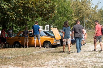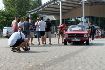 A szépen restaurált szoci vasak előtt mindig szívesen leragadnak az emberek.