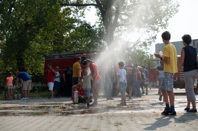 Sokan élvezték a vízfüggönyt, főleg a gyerekek szaladgáltak alatta.