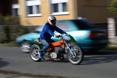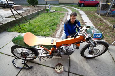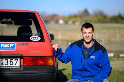 A régi ezres Swift a kísérőautó, illetve kísérőautó és szállítóautó egyben, hiszen ez viszi a trélert a motorral. És ez a családi autó is, bár Sándor már lecserélné, hiszen a fél éves kisfiát nem rakja már olyan szívesen egy ennyire legendás sztaniolmobil