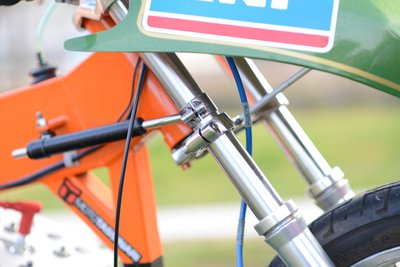 Az első futómű a gyári, kikönnyítve és kidöntve