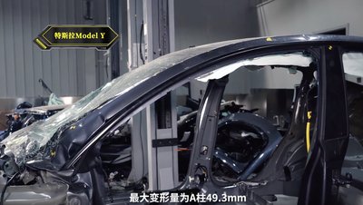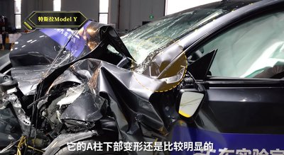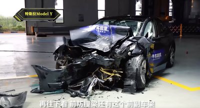 A Teslában a hossztartók és az első torony is összegyűrődött