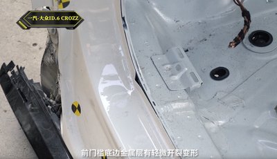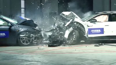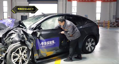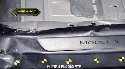 A Tesla Model Y aksifedele is felhullámosodott, azaz torzult az akkumulátorház. Elektromosan nem történt baj, oldott a pirotechnikus megszakító.