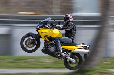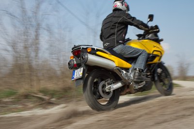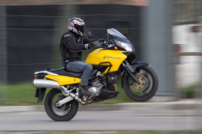 A V2-es eredetileg a TL1000-ből származik. Sportosan is viselkedik, a rövid löketű blokk szereti a pörgést