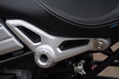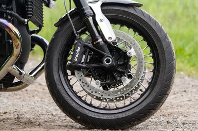 Értő szem egyből kiszúrja a DLC-zett becsúszószárat. A féktárcsa a versenysportból ismert MotoMastertől származik