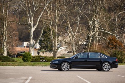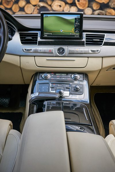 Ilyen autónál előfordul, hogy a tulajdonos nem itt ül, hanem hátul, de az A8 cockpit munkahelynek is remek