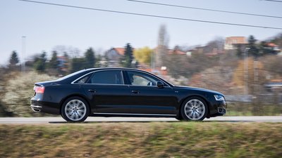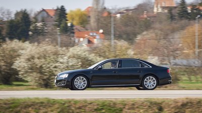 Quattro hajtás, hosszú tengelytáv és főúri tömeg: az A8L W12 nem sportkocsi. De azért igyekszik, ha küldjük neki