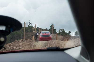 Meg kellett emelni hozzá a légrugós futóművet, azután mehettünk olyan terepre, ami nem városi terepjárónak való...
