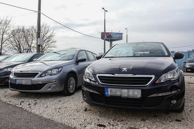 Flottából visszaérkezett Peugeot 308-asok sora. Többségük kombi és dízel, ahogy ez a cégautóknál lenni szokott