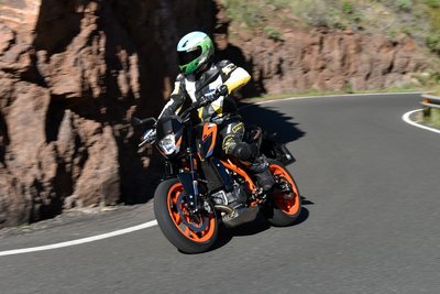 A keskeny, nagyon kanyargós szerpentinen nem annyira adta ki a Duke R üléspozíciója