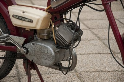 A képen egy eredeti állapotú Verhovina 4 látható. A kismotor a Riga közeli rokona