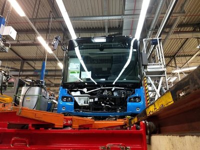 Jelenleg szinte csak bilikék buszok vannak az eCitaro gyártósorain (fotó: Omnibusz Facebook oldala)