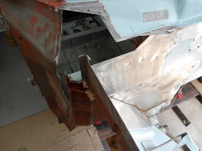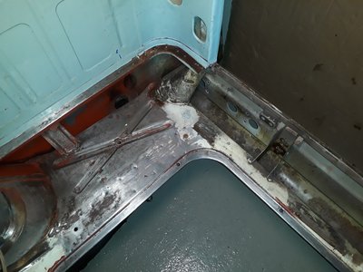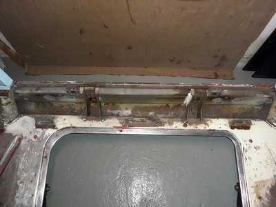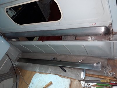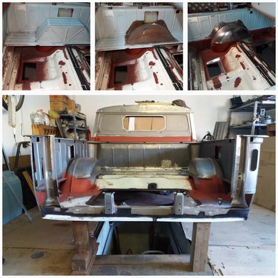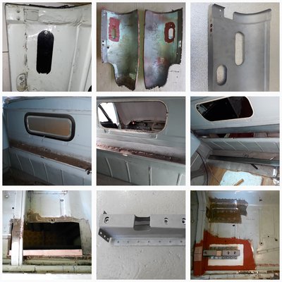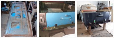 A felső sorban a plató belső „sarka”, középen a válaszfal, alul az utasülés sínje készül