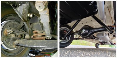 Elől tekercs, hátul laprugós-merevtengelyes a futómű