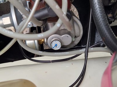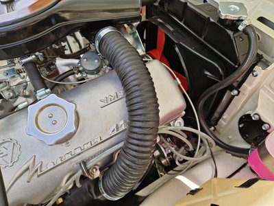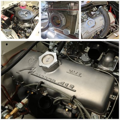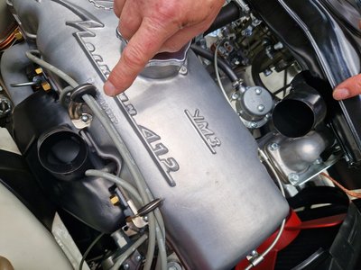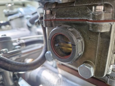 Nemcsak a rádió kezelése igényel szakértelmet, a motor is. Középen a karburátor kémlelőnyílása, ami egy spéci benzinálló plexi, ezt Szentpétervárról rendelte. Jobb felül a télen felszerelendő, meleg levegőt biztosító cső