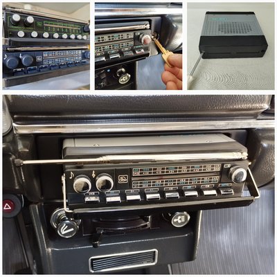 Bal oldalt két másfajta rádió, középen a zárható keret, jobb felül a rászerelt akkumulátor egységgel látható a mindent vivő rádió