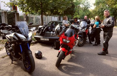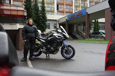 Nyeregbe a hotel Satel előtt. Egy betű híján stimmel is