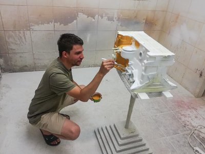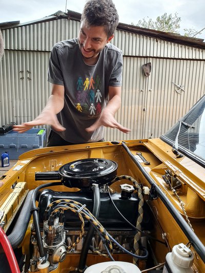 András magyaráz. Vagy a motor forró. Esetleg fel akar robbanni. De akkor miért nincs rajta védőszemüveg?
