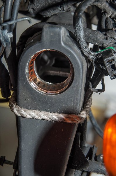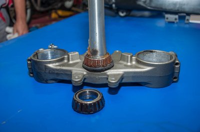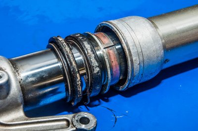 Cserések az első teleszkóp csúszó perselyei, lekopott a felső keményített réteg