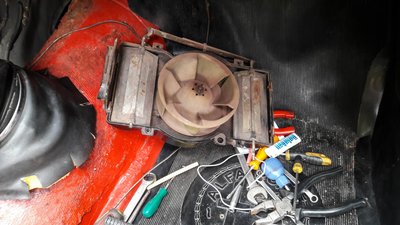 A kibelezett fűtőmotor. Úgy beállt, mint a beton