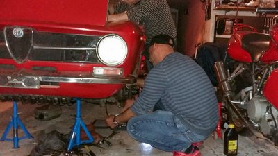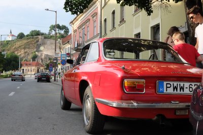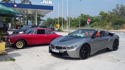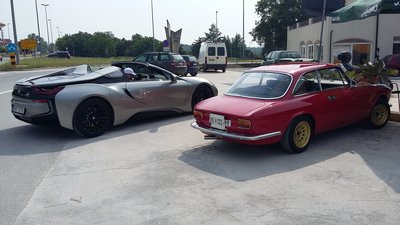 A BMW M5-i8 roadster szlovéniai tesztelésén találtunk egy hajszálpontosan olyan autót, mint az enyém, szintén 1971-es, piros 1300 GT Junior. Csak ezt megfelnisítették, megfakormányosították, valami csüccs is van alatta