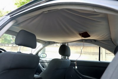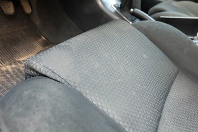 A lámpa azért van kint, mert Gábor úgy gondolta, a lyuka felől visszaragasztja majd a kárpitot. Pedig azt nem lehet, mert a szivacsréteg pereg le a szövet túlfeléről, s nincs az a ragasztó, ami megfogná újra