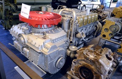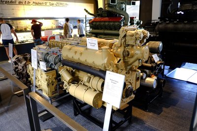 Közelebb hozzánk az 1955-ben tervezett, 48 240 köbcentis, 650 lóerős, V12-es, turbós dízelmotor (Maybach GTO 6), a távolabbi egy MD 650-es, ami 64 500 köbcentis, 1100 lóerős, szintén V12-es, szintén dízel, hatszelepes hengerfejekkel, 1949-ből