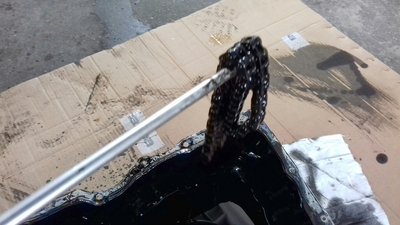 A szakadt olajpumphajtó-láncot az olajteknőből pecázták ki a szervizben