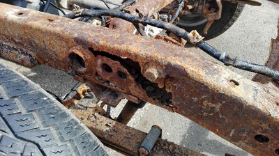 Szerencsére ez csak felületi rozsda, nem gyengíti a szerkezetet. De két év múlva, ha a barnaság belecsámcsog a vasba már nem megy át a kocsi