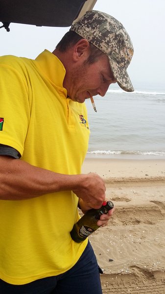 Túravezetőnk öngyújtóval nyitja a sört. Arrafelé csak a Toyotát ismerik, a sörnyitót nem