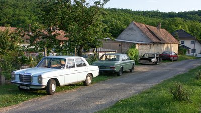 Látszik, hogy mostanában készült a fotó Kareszék udvarán, mert már végig állnak a kerítés mentén az autók