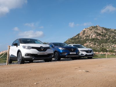 Renault hobbiterepjárók tornasorban, elől a Captur, aztán a Kadjar és a végén a Koleos