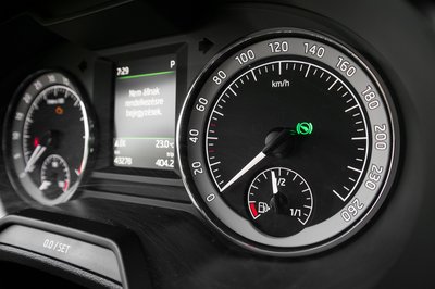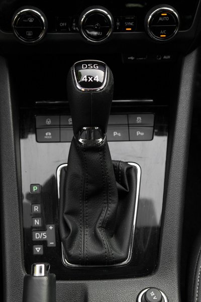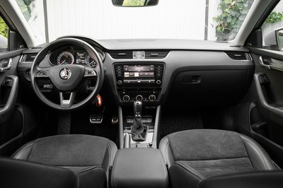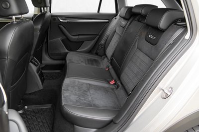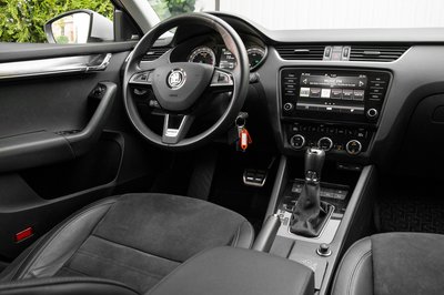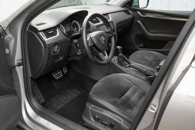 Szinte minden elképzelhető luxus egy Skodától: félbőr-Alcantara ülés, DSG-váltó, nagy hifi