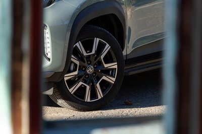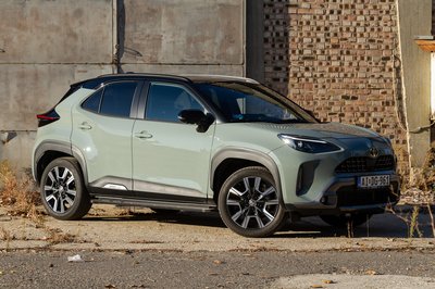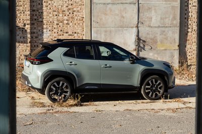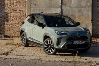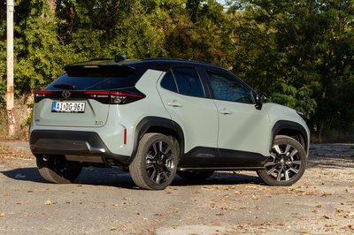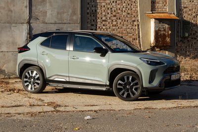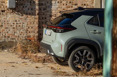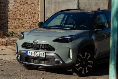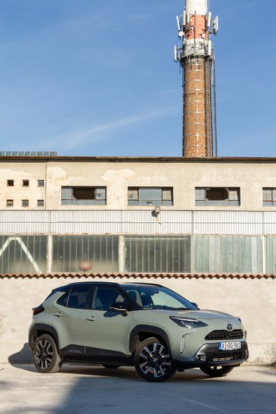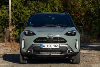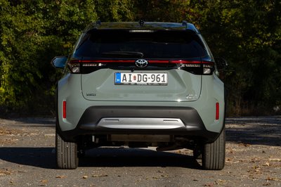 Új Oliva zöld fényezésében csak napsütésben látható a zöldes árnyalat, így inkább szürkének látja az ember. Ettől függetlenül jól áll a Yaris Crossnak.